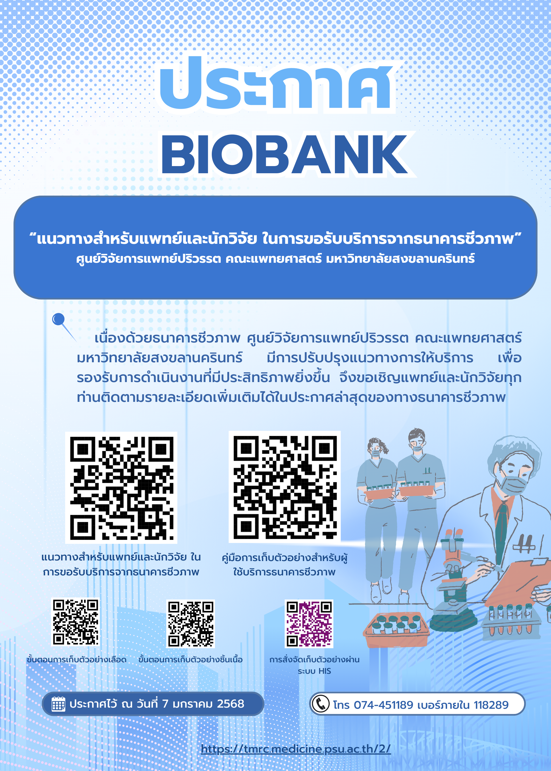 จัดเก็บตัวอย่างชีวภาพเพื่องานวิจัยในอนาคตกับธนาคารชีวภาพ